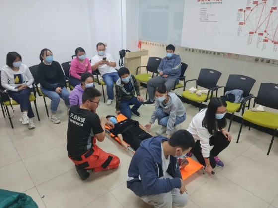 时间就是生命当意外伤害发生时最有效的抢救时间只有短短的4-6分钟这也就是医学上所说的“黄金救护时间”每耽误1分钟死亡率就会直线上升如果在事故现场伤者本人或第一目击者懂得应急救护知识通过简单的自救、互救如人工呼吸、心肺复苏如止血、包扎、固定和搬运那么50%以上的生命可能被挽救为进一步普及应急救护知识,增强市民群众的安全防范意识和自救互救能力,提高紧急情况处理水平,10月13日晚上,广州天廷救援志愿服务队来到星河湾社区开展应急救护公益培训活动。活动现场,天廷救援教练主要从救护概念、创伤救护、海姆立克法等方面进行